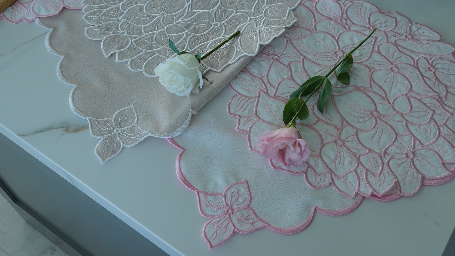 Açıklama: Keten Pamuk karışımı servisimiz, nakış detayıyla sofra dekorunuzu güzelleştirecek. Türkiye' de...